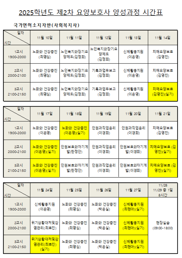 | 강좌명 | 2025년도 제2차 요양보호사 양성과정(사회복지사반) 수강생 모집(강의 일정 변경) |