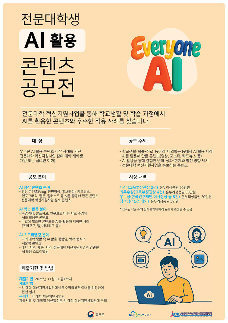 2025년 전문대학 혁신지원사업 AI활용 콘텐츠 공모전 안내