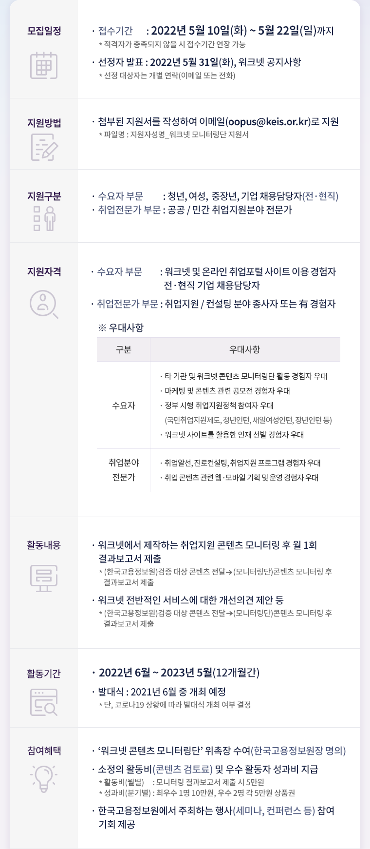 [WORKNET] 2022년 워크넷 콘텐츠 모니터링단 모집 공고
