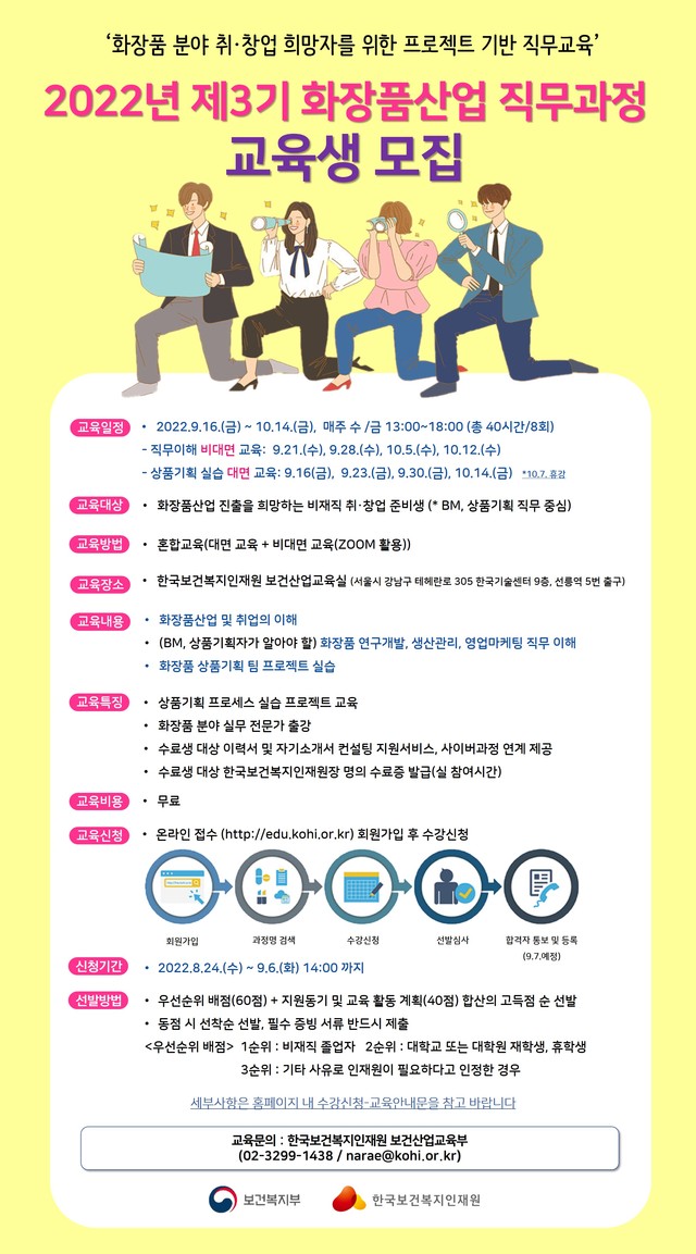 [훈련생]2022년 제3기 화장품산업 직무과정 교육생 모집안내